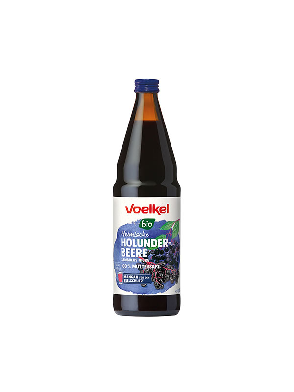 Voelkel elderberry juice is a high-quality juice obtained from the first pressing of organic elderberries.