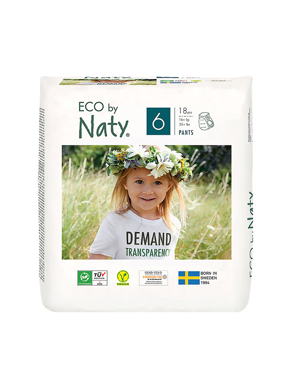 Eco by Naty disposable diapers are the only diapers with 100% certified natural materials and vegan friendly.