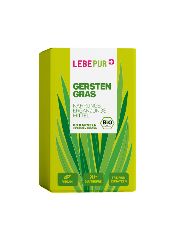 Each Lebepur Barley Grass capsule provides you with 1000 mg of the purest barley grass powder from certified organic farming, gluten-free, without additives or anti-caking agents, making it suitable even for vegans.