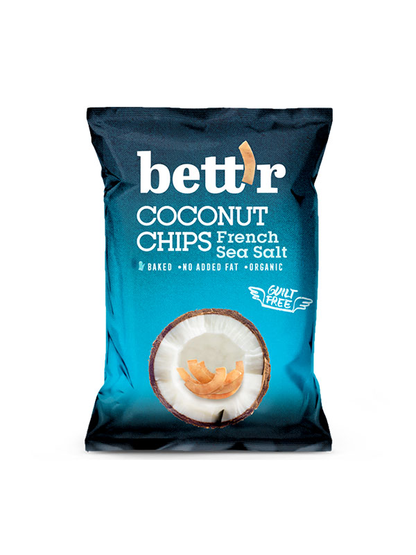 Carefully selected organically grown coconut is gently shredded and baked to a crispy texture. With the addition of French salt, Bett'r chips are the ideal option when you are looking for a healthier snack.