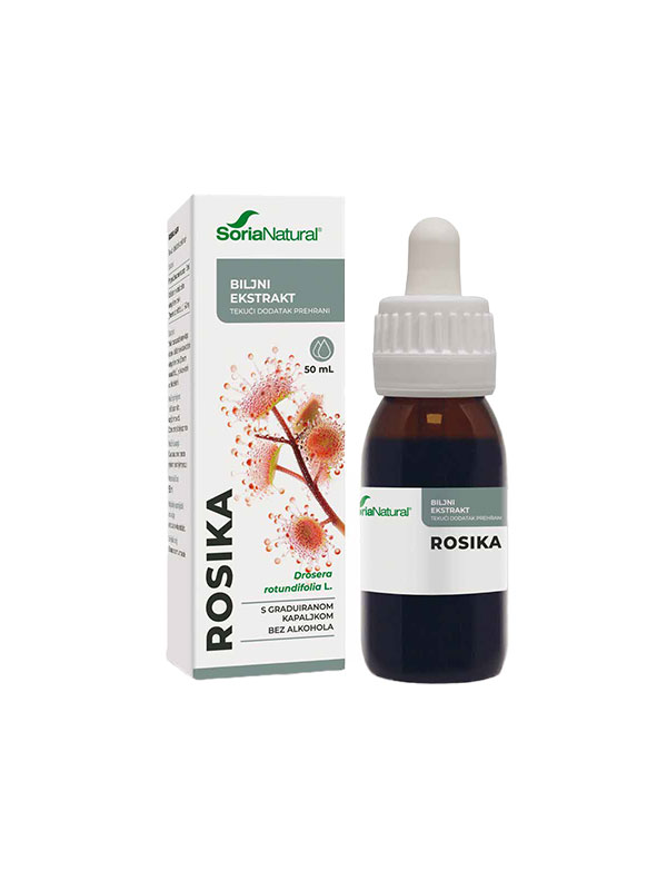 Soria Natural Rosika is a liquid dietary supplement made from freeze-dried extract of the round-leaved sundew (Drosera rotundifolia).