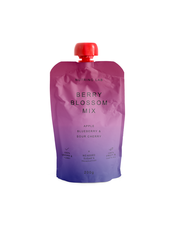 Nutrino Lab Fruit Snack is the perfect combination of juicy apples, sweet blueberries, and tangy cherries.