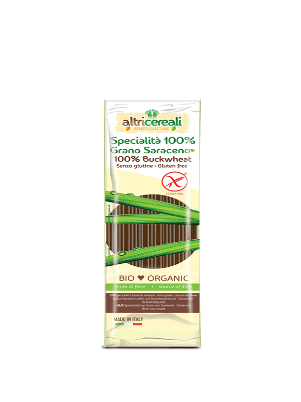 Organic buckwheat spaghetti pasta by Probios new Altri Cereali line. Gluten-free and organic source of fibre.