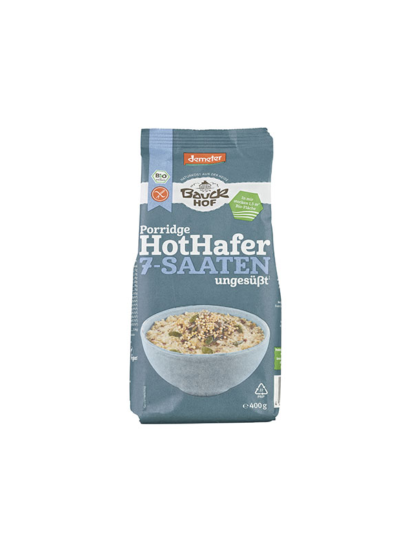 BauckHof 7-seed porridge, made with the finest Demeter quality, comes straight from a gluten-free oat mill, where whole oat grains are carefully processed into a harmonious blend of ground and whole oat flakes. In addition, it contains sunflower and pumpkin seeds, hemp and flax seeds, combined with sesame, chia, and blue poppy seeds.