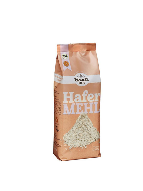 Bauck Mühle oat flour is made by grinding organically grown oat flakes and is commonly used in cooking, often mixed with wheat flour.