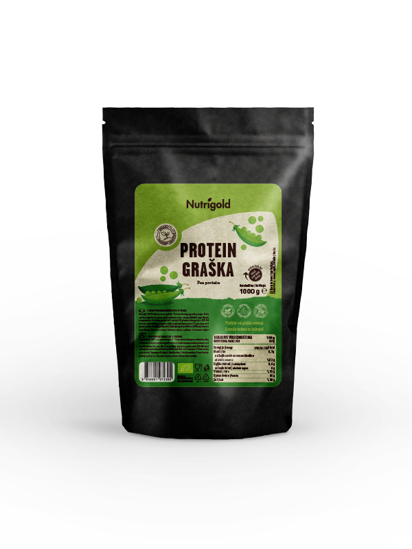 Nutrigold pea protein powder is a supplement made by extracting protein from organic peas by delicate processing into powder.