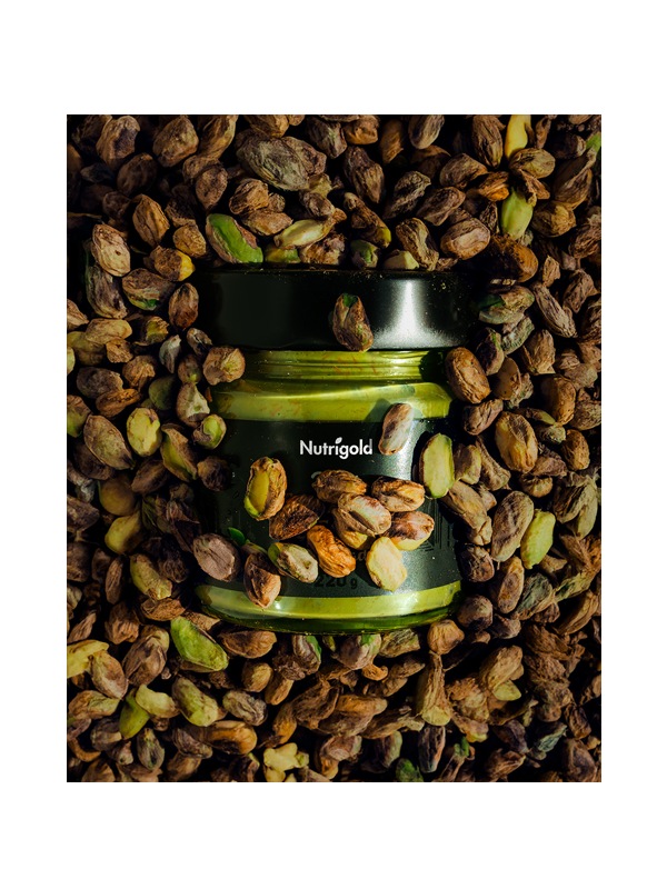 This Nutrigold spread combines the intense flavor of roasted pistachios with the addition of crispy kadaif, traditional thin pastry threads known from Middle Eastern cuisine, bringing a contrast of textures and a richness of flavors that captivate you with the very first bite!