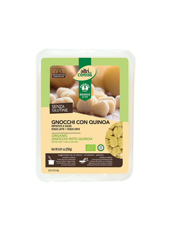 Probios quinoa and potato gnocchi are ready in just a few minutes, entirely made without the use of milk, eggs and gluten. Suitable for a vegan diet.