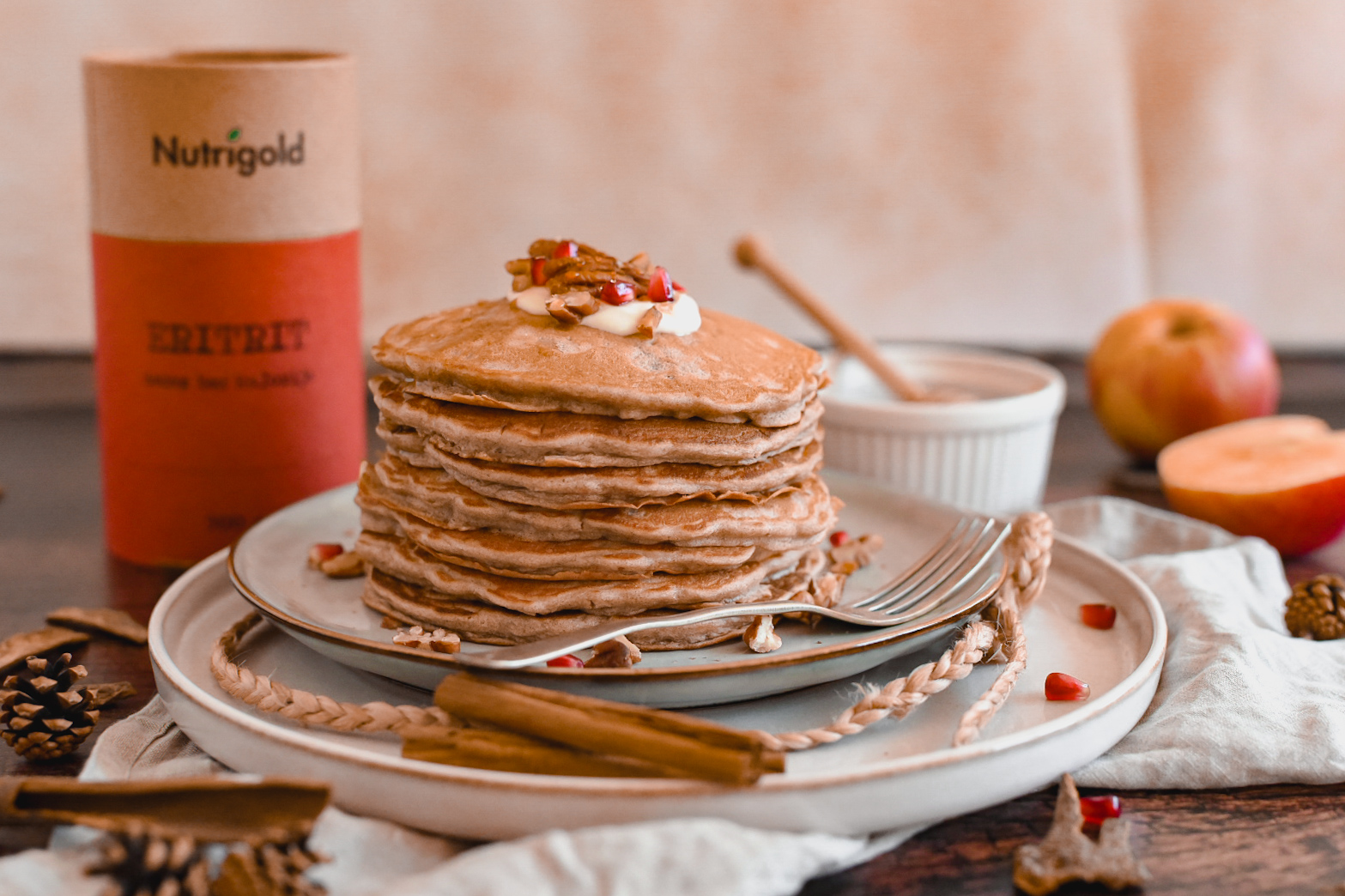 Although they are full of autumnal flavour, they are perfect for any time of year. This healthy and juicy fruit always prevails in the season of foggy and cold days, and in pancakes especially! Clearly, pancakes with spelt flour.