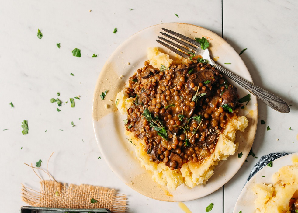 Enough time to make a delicious and flavourful lentil and mushroom sauce. Creamy and rich, this sauce can even be eaten on its own like a stew. Full of protein and fibre, suitable for vegans and all those who eat healthy and high quality, this sauce offers a getaway from the classic recipe in which mashed potatoes are complemented by creamy spinach.