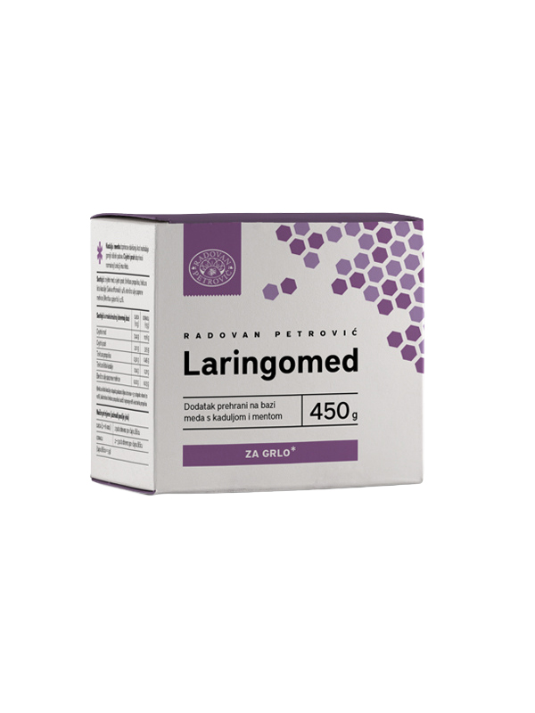 Laringomed is a dietary supplement with various types of pollen, honey and propolis as a natural antibiotic with the addition of sage and peppermint essential oil. It removes sore throats very quickly and enables quick recovery. The high concentration of propolis acts as a natural antibiotic, neutralizes the focus of inflammation and has an antiseptic effect. The vitamin base of the pollen in the honey base raises the impaired immunity. Due to its composition, mint has an antiseptic and analgesic effect and is officially approved as an oral medicine for colds and coughs. Sage has a soothing and beneficial effect on the throat, it is a natural antiseptic that in combination with propolis as a natural antibiotic quickly and effectively relieves sore throat.
