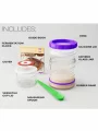 Versatile cup with lid – Functions as a sourdough fermenter lid, measuring cup, and storage container. The markings on the side (cups/grams and milliliters) help you measure flour and water precisely. The cup covering the jar allows airflow and promotes active cultures in your sourdough starter.