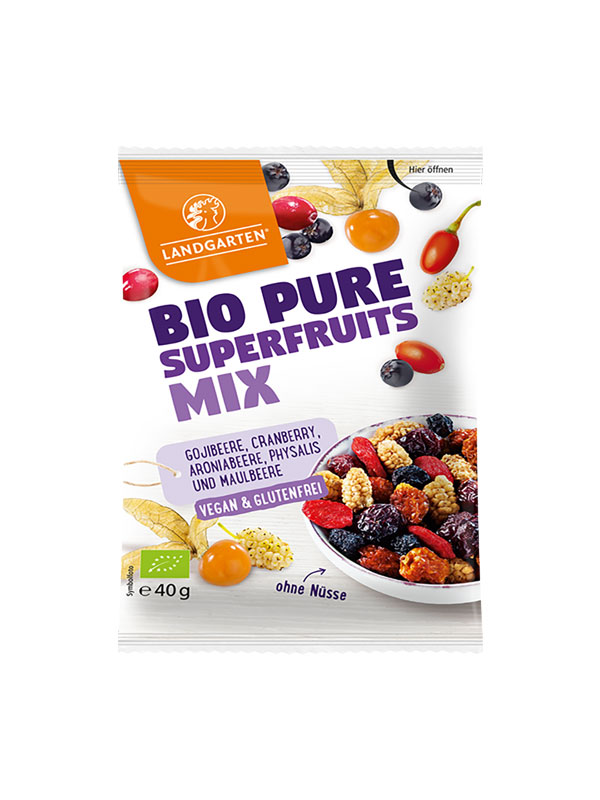 Landgarten's organic and healthy sweets will enchant you with flavour. Gluten free and vegan mix with dried superfruits.