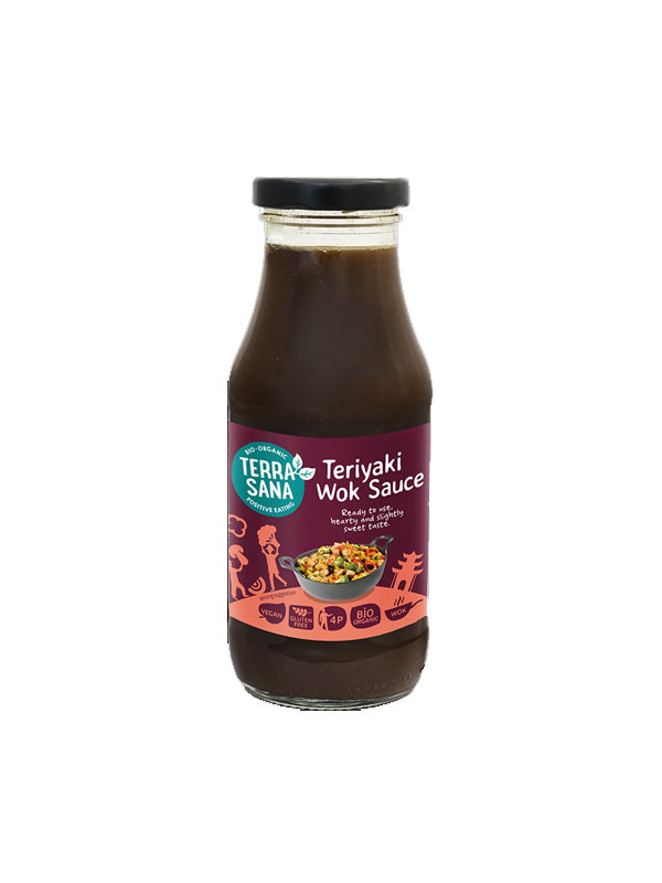Experience easy preparation and unforgettable taste with Terrasana organic teriyaki wok sauce – simple, fast, and tasty!