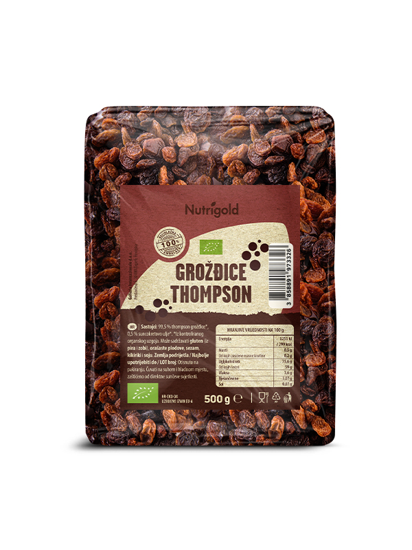 Nutrigold Thompson raisins are organic fruits of the grapevine that are naturally dried in the autumn sun. Their charm lies in the irresistible taste that is at the same time adorned with sweet and sour aromas.