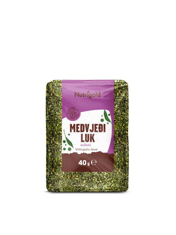 Nutrigold wild garlic contains only carefully selected dried leaves of the highest quality packed to retain the plant's finest aroma. It can certainly be said that aromas resemble garlic and a bit of chive, but the taste is still slightly milder, which makes it a great choice for preparing many dishes.